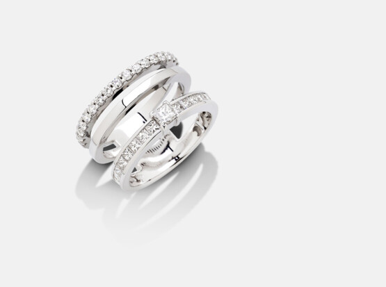 A Matter of Light, un gioco di superfici lucide ed incassate, il contrapporsi delle fedi poste a diverse distanze, l'estrema precisione artigianale ma soprattutto la luce emanata dai diamanti rigorosamente disposti