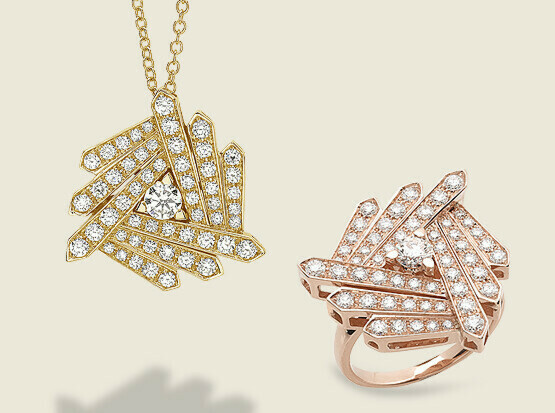 La collezione trae ispirazione nelle sue forme dalle geometrie del periodo Art Deco americano