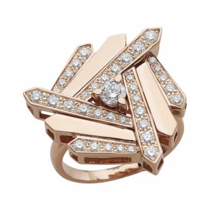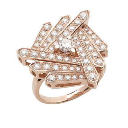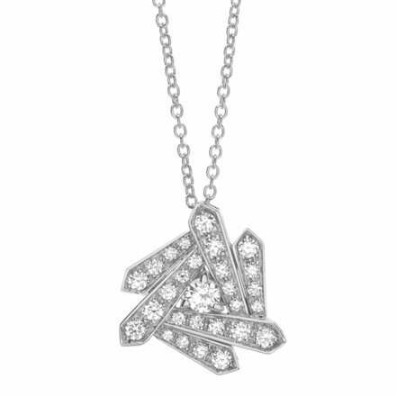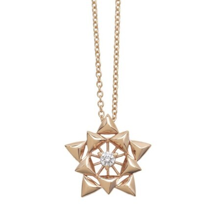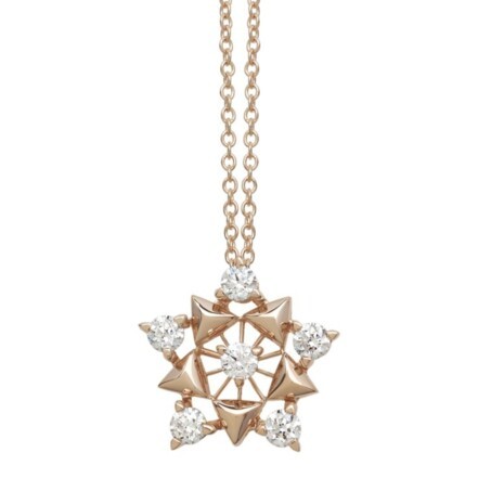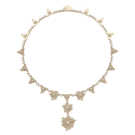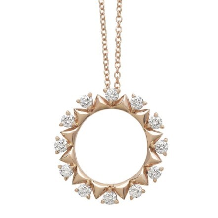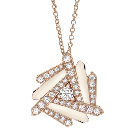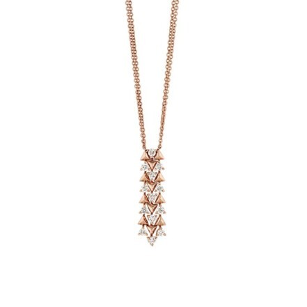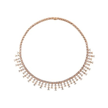 Collana girocollo d'ispirazione Art Deco in oro rosa 18 carati con diamanti rotondi taglio brillante colore G, purezza VVS. Lunghezza collana 42 cm
