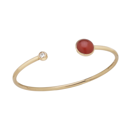 18 carat rose gold bangle bracelet featuring a lapis lazuli natural cabochon cut and a single round brilliant cut diamond G color, VVS clarity. 1,5 cm between the two elements
