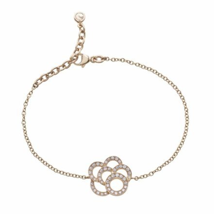 18 carat rose gold pendant necklace featuring a romantic flower shape adorned with round brilliant cut diamonds in G color, VVS clarity. 90 cm length double chain. Pendant diameter 4 cm