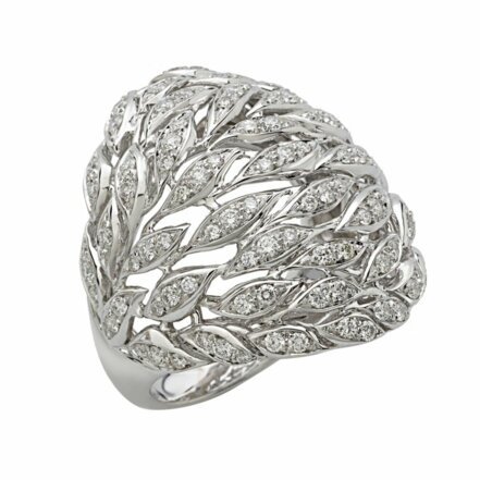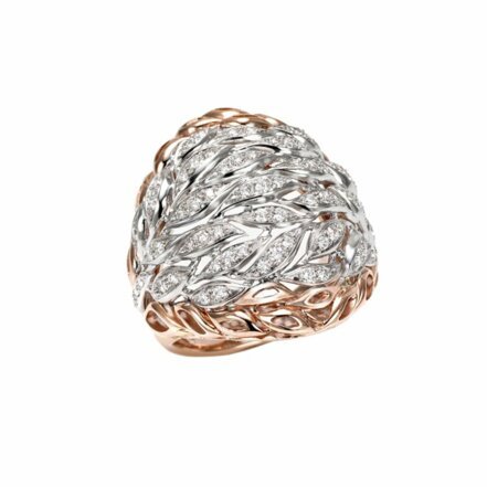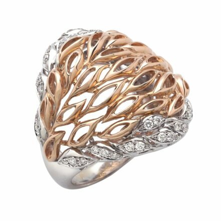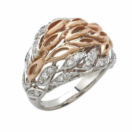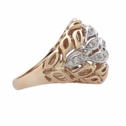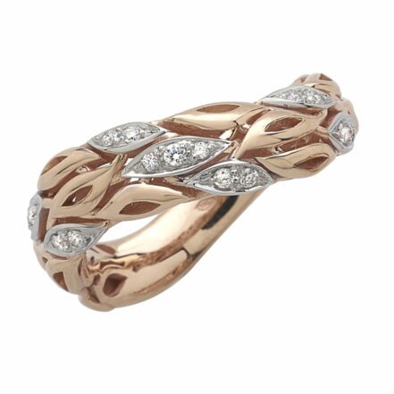 18 carat rose gold wavy shape band ring, featuring leaf motives
